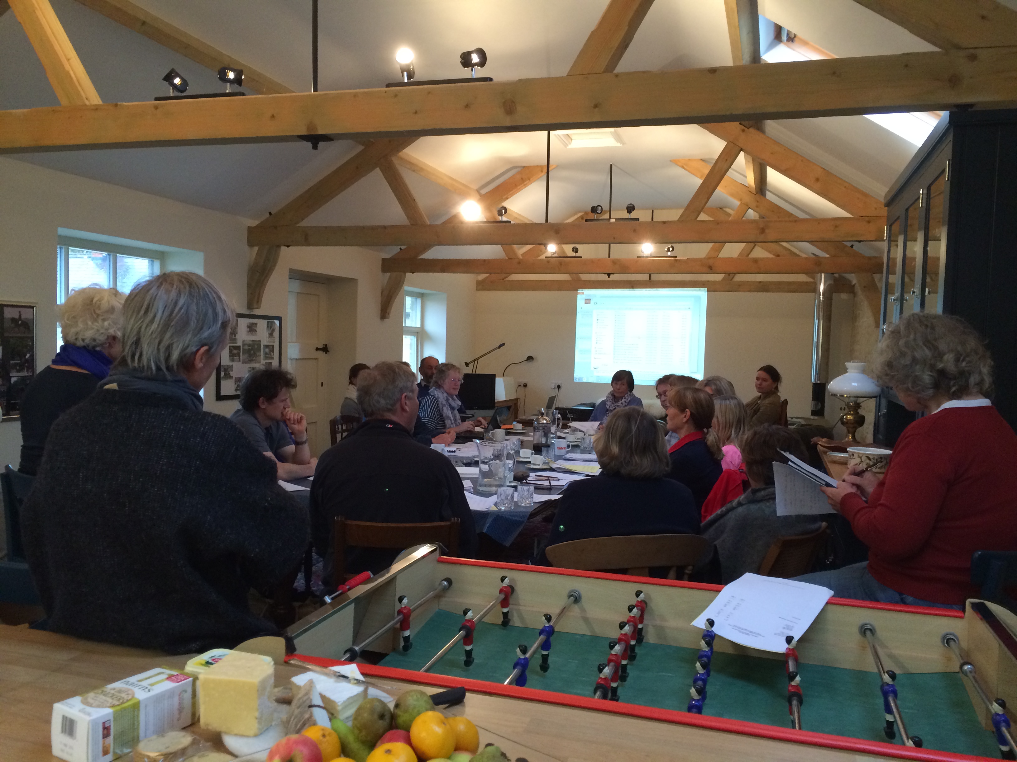 Teaching room complete with table for large groups, Kitchen area and WC with shower.